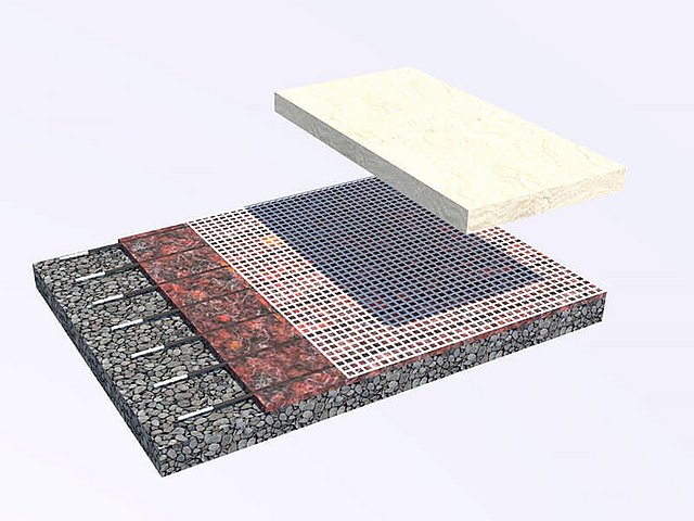 Das System in Zwei-Schichtbauweise weist eine Gesamtaufbauhöhe von ca. 35 cm auf. Die Tretschicht wird aus hochwertigen hergestellten Quarzsanden ( mehrfach gewaschen) zusammengestellt.