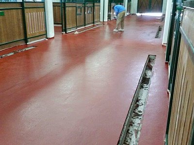 Als weitere Lösung für ihren Pferdestallboden bietet EHG die Versiegelung ihres Bodens mit einer trittsicheren Gummibeschichtung an. Der versiegelte Gummiboden wird auf der vorhandenen Betondecke oder Asphaltdecke mit einer Stärke von 15 bis 20 mm aufgebracht und bietet dadurch eine komfortable Federung.