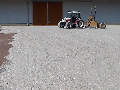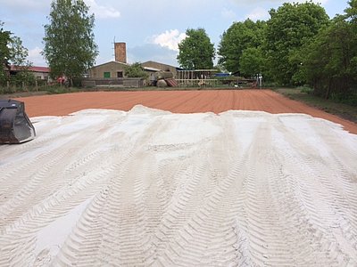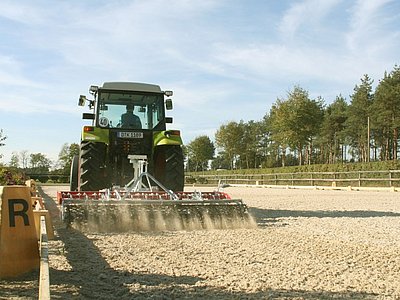 Die Tretschichten können bereits im Sandwerk vorgemischt werden mit diversen Zuschlagstoffen , wie Vlieshäcksel, IRS-Reiterspänen oder Natur-Vlieshäcksel, bzw. werden vor Ort auf der Reitanlage gemischt . Der Einbau der Tretschicht erfolgt mittels Lasergrader höhengerecht, d.h. millimeter-genau.