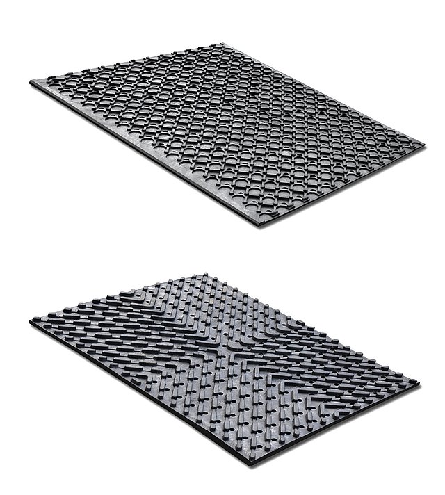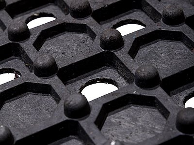 - hoch effektive, wasserdurchlässige Löcher auf der Oberseite ( Version Aussenplatz-Lochmatte)
