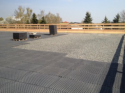 - Deckfläche: unempfindlich gegen chemische Stoffe und UV-Strahlung, wasserdurchlässig, hohe Belastbarkeit (15 to/m²)