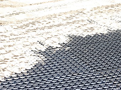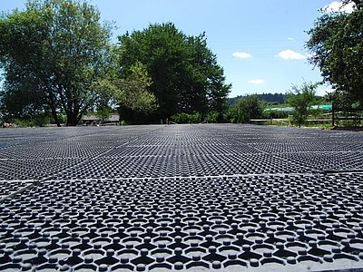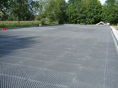 Die H-Lochmatte kann zur Optimierung der Drainagefähigkeit mit gewaschenem Kiessand oder Splitt verfüllt werden. Als Untergrund eignet sich vorzugsweise ein fester Boden bzw. Schotteruntergrund.