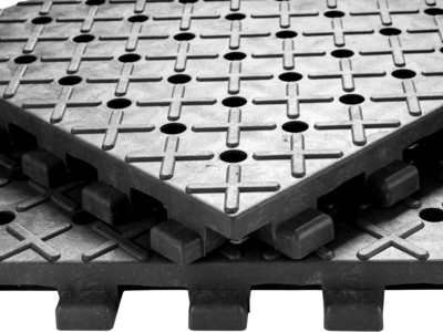 Die universell einzusetzende Matte ist rundum verzahnt und aufgrund ihrer Stabilität geeignet für Paddocks auch ohne Untergrundveränderung, für Futterplätze, Wirtschaftswege oder Übergänge vom Stall zur Koppel.