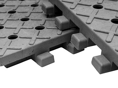 Die Universalmatte kann je nach Verwendungszweck angepasst beidseitig verwendet werden und eignet sich mit entsprechendem Unterbau auch für die Befestigung von hochfrequentierten Parkplätzen oder Wegen.